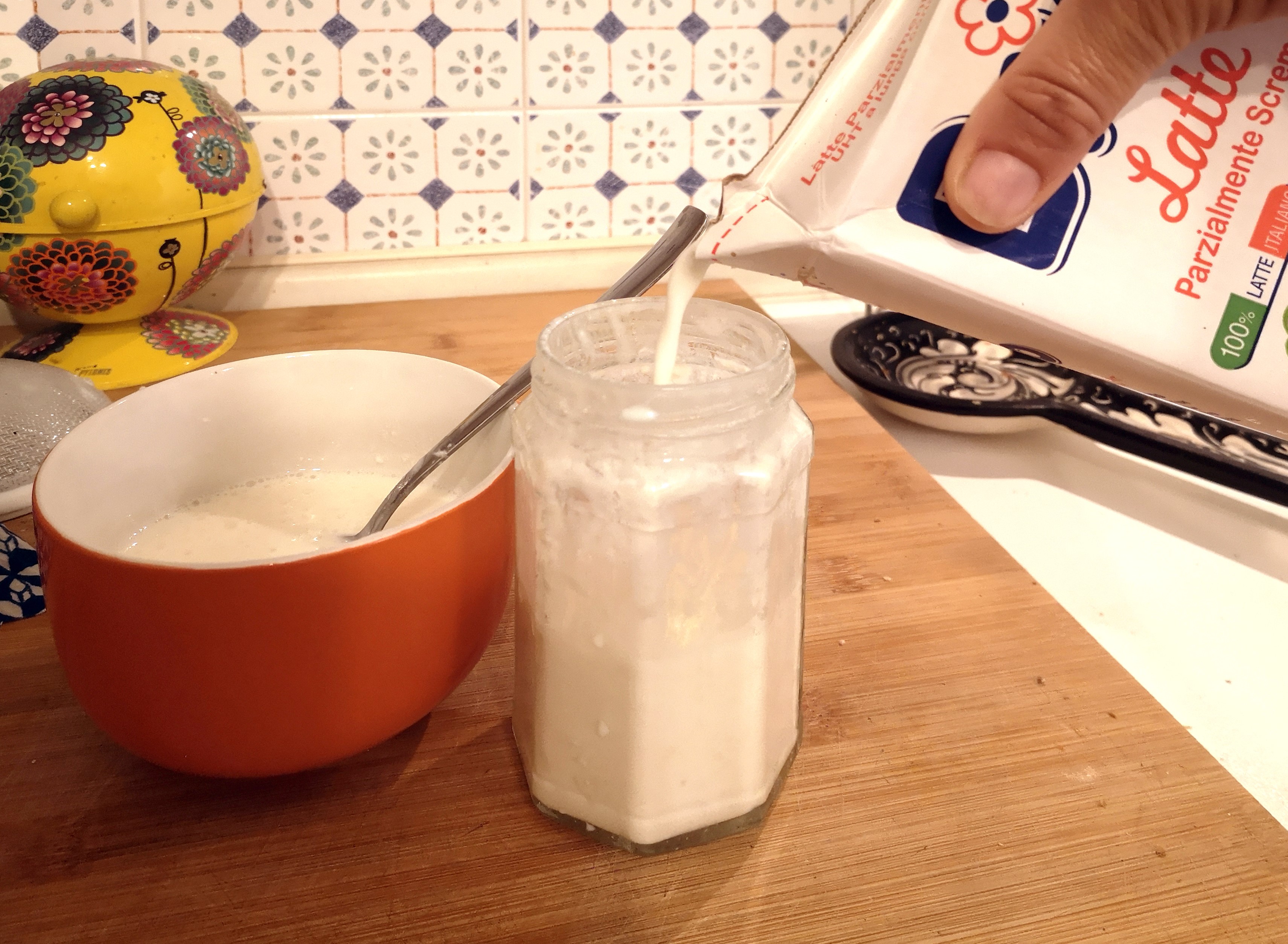 Ogni mattina, basterà filtrare il latte di kefir pronto per essere consumato e rimboccare il barattolo di nuovo latte, in proporzione di 1:10, per nutrire la nostra colonia.
